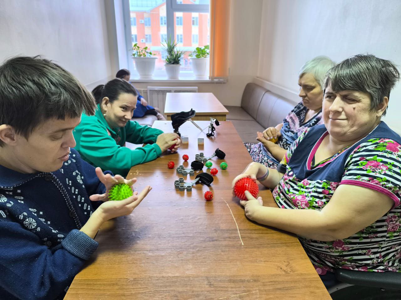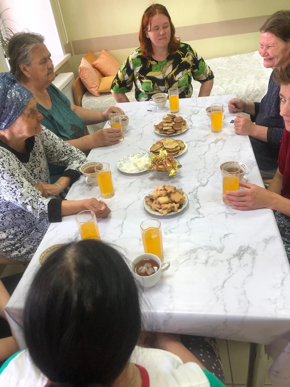 В нашем доме-интернате царит особая атмосфера — здесь каждый чувствует себя частью большой и дружной семьи. Проживающие не только вместе отдыхают и общаются, но и с удовольствием трудятся: ухаживают за цветами, помогают на кухне, участвуют в благоустройстве территории.
