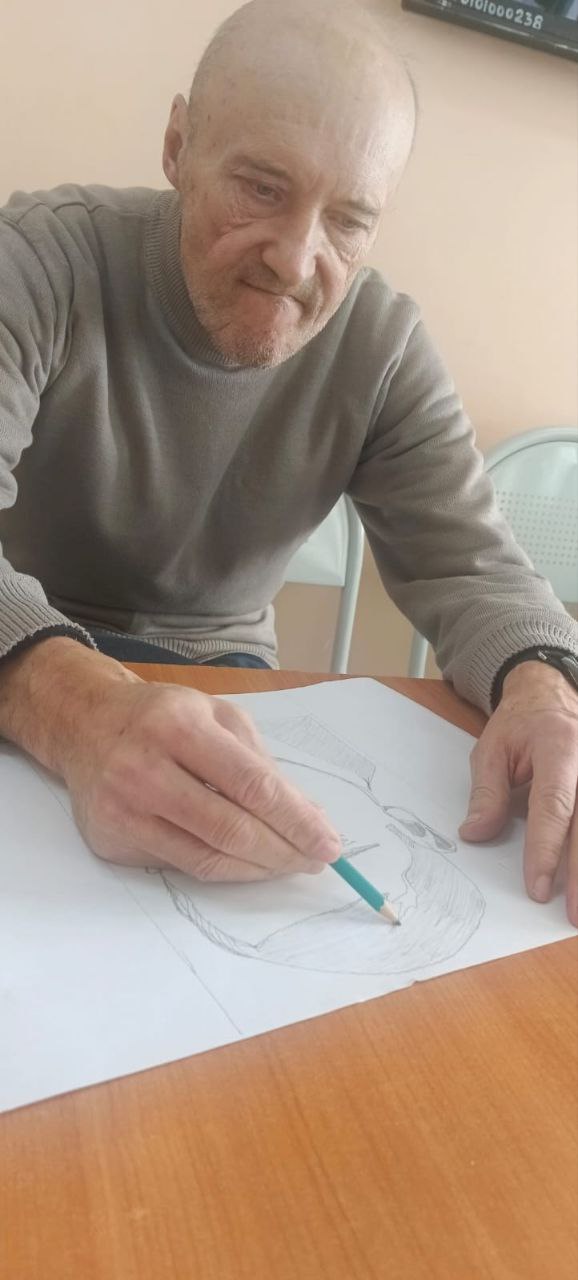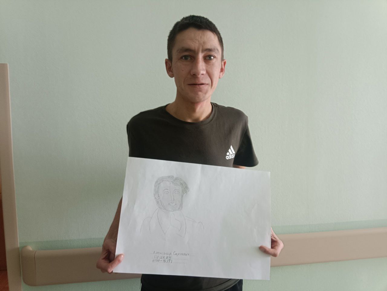 Ко дню памяти А.С Пушкина проживающий дом - интерната Фатихов Ильшат нарисовал портрет писателя.