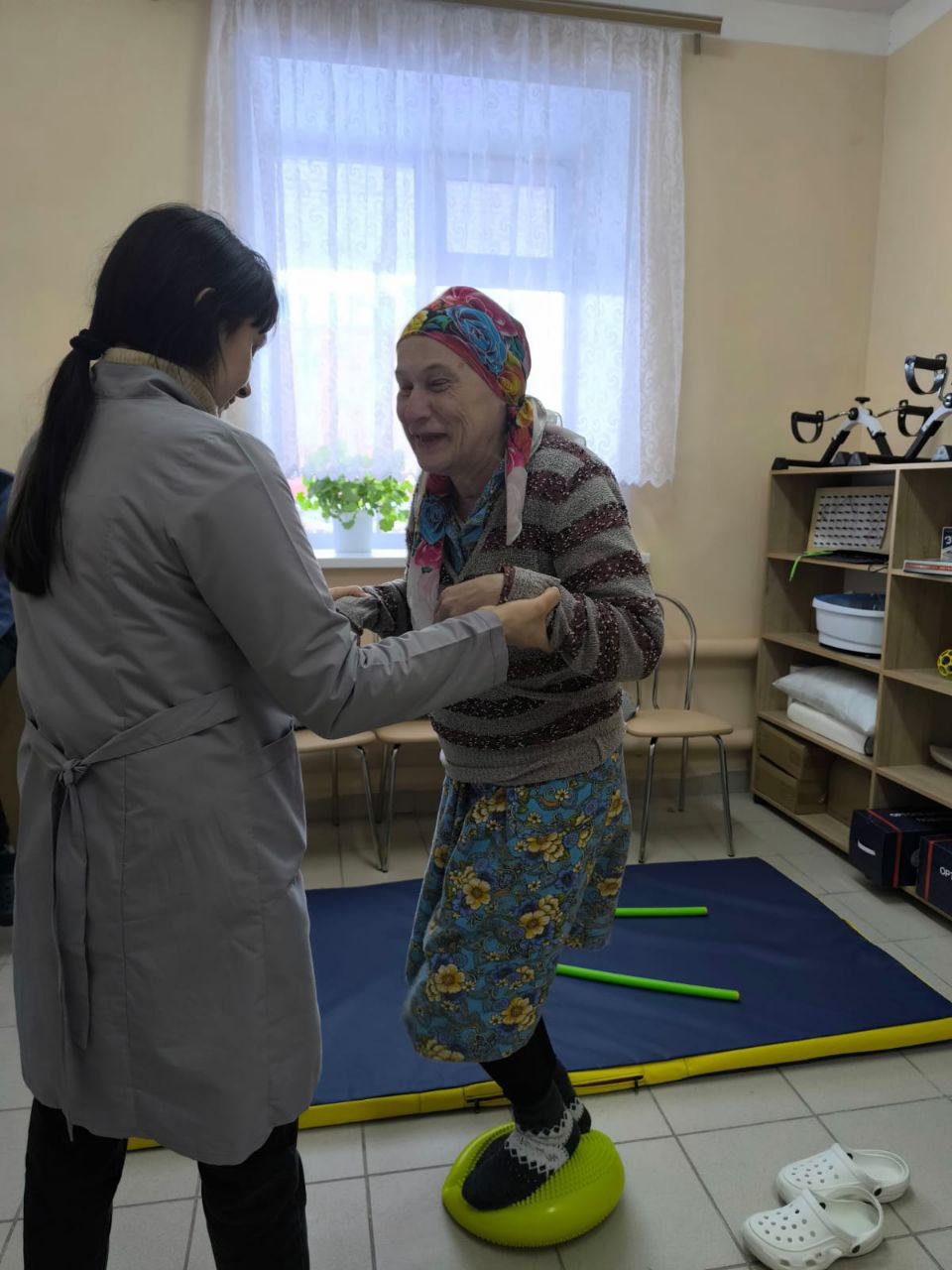 Комплекс реабилитационных занятий, направленных на восстановление двигательных функций , с помощью гимнастической палки и балансировочного диска для равновессия.