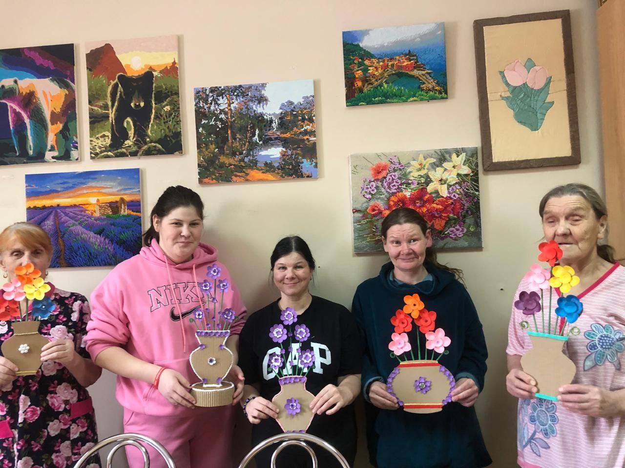 🌷По окончании занятия все участники решили подарить свои работы в праздничный день женщинам, которые являются опорой и заботой в учреждении. Такой жест внимания и признательности станет тёплым и искренним поздравлением с праздником 8 Марта.
