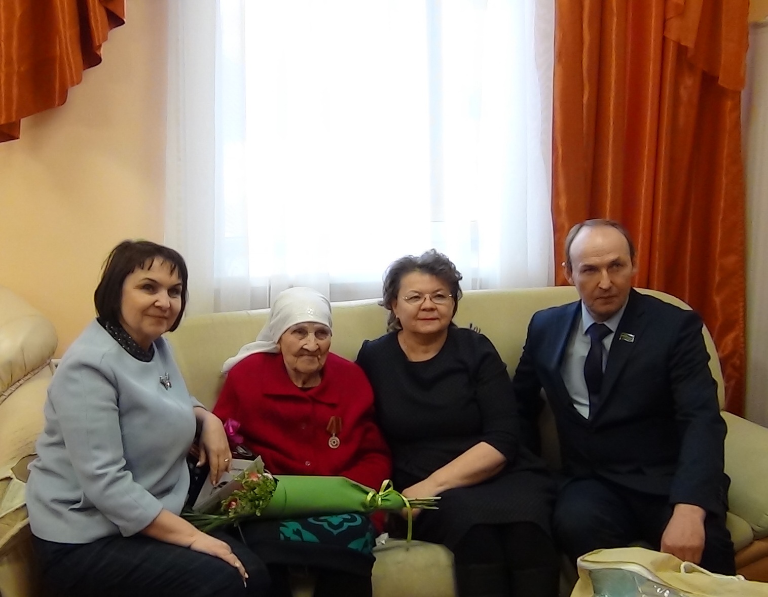 В этот замечательный день Анастасия Артемьевна получила персональное поздравление Президента Российской Федерации В.В.Путина. От имени главы Бавлинского района, заместитель главы по социальным вопросам Хуснуллина И.И. , вручая букет цветов с подарком пожелала юбиляру крепкого здоровья и бодрого настроения. Поздравил Анастасию Артемьевну и глава Крым- Сарайского сельского поселения Д.А.Шакирзянов и родственники. Уроженка с Дмитриевка Бавлинского района ТАССР, Анастасия Артемьевна с 12 лет сеяла, жала, работала наравне со взрослыми. Всю жизнь проработала в совхозе «Бавлинский» свинаркой. Общий трудовой стаж 40 лет. Имеет звание «Ветеран труда». Награждена юбилейными медалями в честь Победы в Великой Отечественной войне 1941-1945 г.г. Вот уже 11 лет она живет в Бавлинском доме-интернате. Несмотря на свой преклонный возраст, она остается любознательной, общительной и веселой.