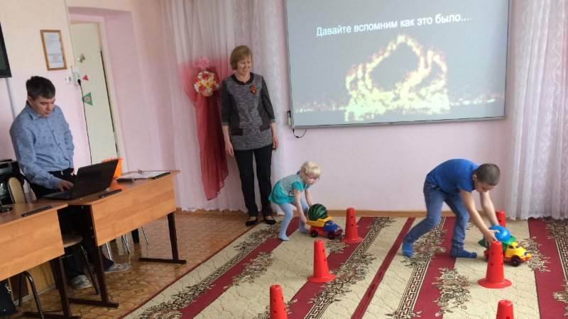 Две команды «Танкисты» и «Артиллеристы» азартно соревновались в силе, ловкости, смекалке. Они участвовали в эстафетах «Перевозка продуктов на грузовике», «Пролезть по туннелю с автоматом», «Шофер перевозит солдат», «Доставь боеприпасы» и остальных. Также воспитанники закрепили знания о военных профессиях и о празднике 9 Мая.