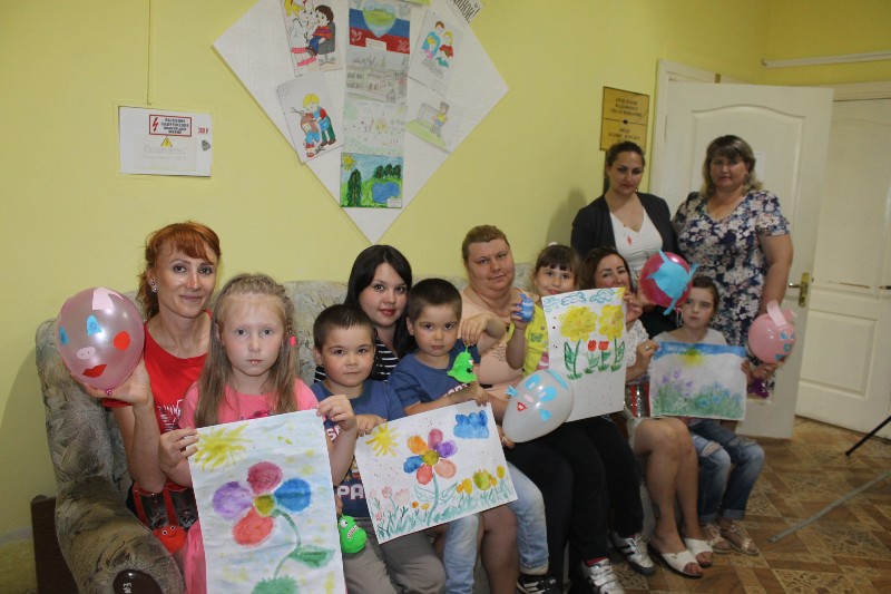 Целевой аудиторией данного мероприятия стали мамы с несовершеннолетними детьми. Специалисты центра подготовили праздничную программу, где с семьями была проведена арт-терапия в технике мокрого рисования «Цветок семьи». В этом занятии родители и дети совместно показали свою творческую деятельность, выразили в рисунке внутрисемейные связи, эмоциональное общение, общие интересы.