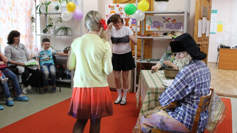 Мероприятие началось с театрализованного представления. Специалисты по социальной работе Агляметдинова Е.В. и Маснавиева Н.А., психолог Лобанова М.И. и социальный педагог Семенова Н.В. перевоплотились в героев сказки «Кто первый заговорит» – бабушку, дедушку, внучек Катеньку и Настеньку. В ходе представления родители и дети пришли к единому выводу, что мир в семье – главное условие благополучия и счастья всех членов семьи.