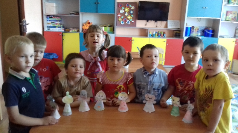 Все дети принимали активное участие в трудовой деятельности, учились своими руками создавать любимых героев сказки «Репка». Каждый ребёнок делал определённого персонажа сказки. Ребятам понравилось раскрашивать костюмы, прорисовывая детали и элементы узора. Выполняя свою поделку, дошкольники учились аккуратно работать с бумагой и клеем. Все работы получились яркими и красивыми, что дети сразу захотели с ними поиграть, и они с удовольствием разыграли сказку «Репка» со своими любимыми героями.