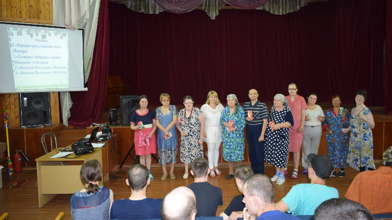 10 июня в актовом зале Зеленодольского психоневрологического интерната прошла познавательная викторина «Я горжусь тобой, Россия!», приуроченная к Дню России. Все задания викторины были посвящены нашей Великой Родине – России. Но ни одно задание, ни один вопрос не остался без ответа, ребята проявили себя как большие знатоки всего русского. А некоторые проживающие показали довольно глубокие знания русской истории и русской культуры. Все участники викторины получили небольшие призы, а также вместе спели государственный гимн Российской Федерации.