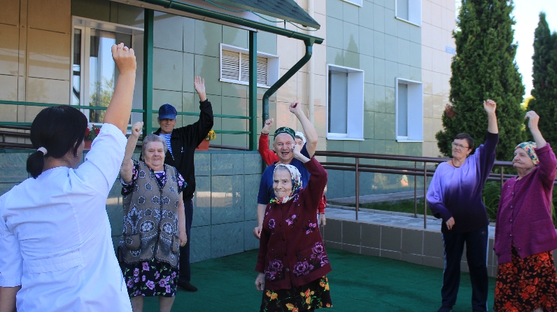Каждое утро в ГАУСО «Верхнеуслонский дом-интернат для престарелых и инвалидов» проводится утренняя зарядка. Утренняя гимнастика подходит для людей любого возраста и уровня физической подготовки, поэтому это вид активности, наиболее подходящий для нашего контингента. Утреннюю зарядку делают все желающие.