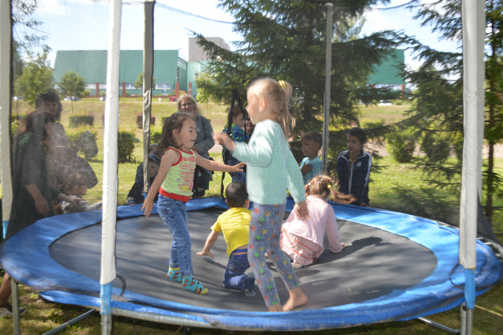 После преодоления полосы препятствий приглашенные развлеклись на батуте, любезно предоставленном благотворителем – Андреевой Алесией.