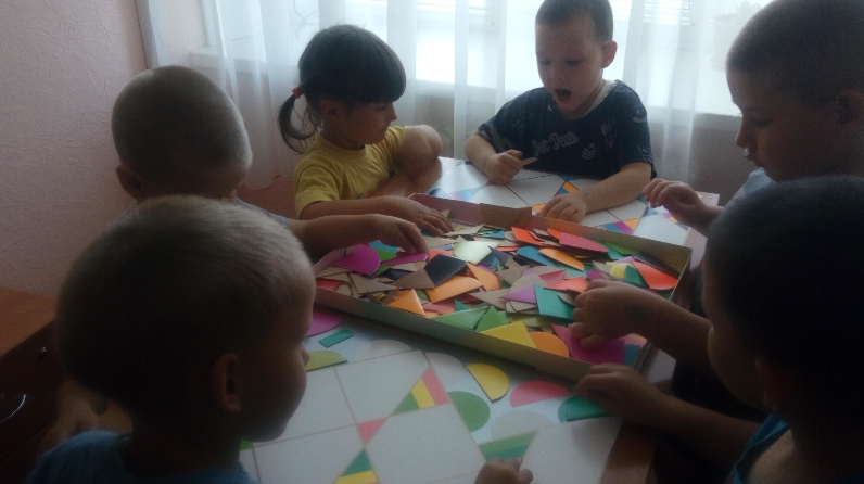 После просмотра презентации «Цвета радуги», ребятам были загаданы загадки о цветах спектра. Дети с большим интересом и желанием отгадывали загадки. Поиграли в дидактическую игру «Цветная мозаика», в которой воспитанники закрепили и цвета и геометрические фигуры. В окружающей обстановке находили предметы по названному цвету. На занятии ребята проявили активность, мышление, внимательность.