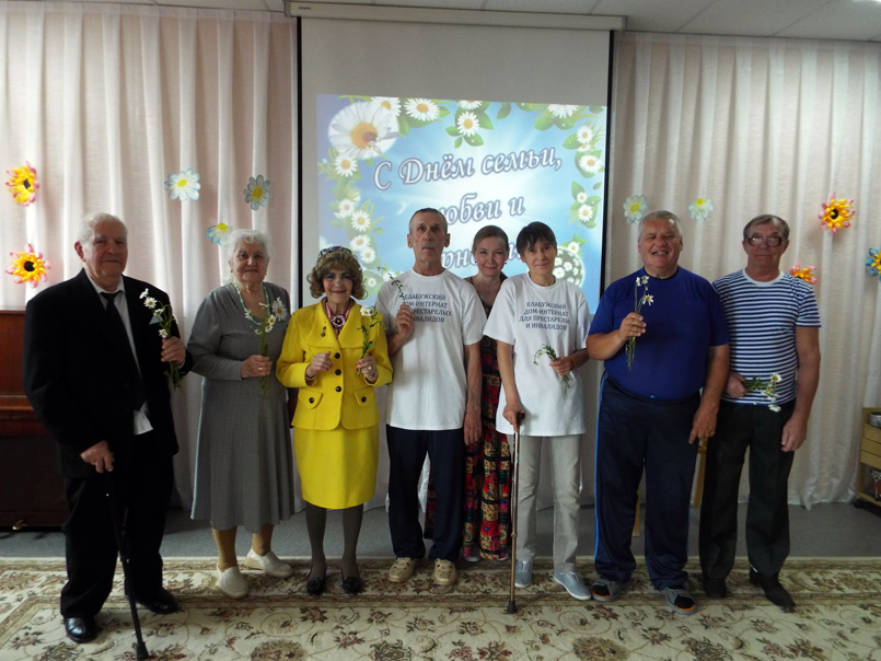 Собирая по лепесточку символ праздника - ромашку, участники программы называли прилагательные на первые буквы слова «Семья» (сплоченная, единая, музыкальная, модная, яркая и др.), участвовали в разных конкурсах и эстафетах: проходили вместе змейкой, держась друг за друга, преодолевая препятствия, исполняли стихи и песни.