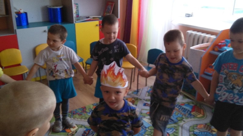 Затем ребята поиграли в игру «Огонь – друг, Огонь – враг», где закрепили знания о пользе огня и о вреде, который он приносит. Дети познакомились с пожарной службой, учились набирать номер «01», поиграли в игру «Хлопаем, топаем», «Тушим пожар». Надеемся, что дети запомнят полученные знания и навыки культуры безопасного поведения, и никогда не станут виновниками пожаров.