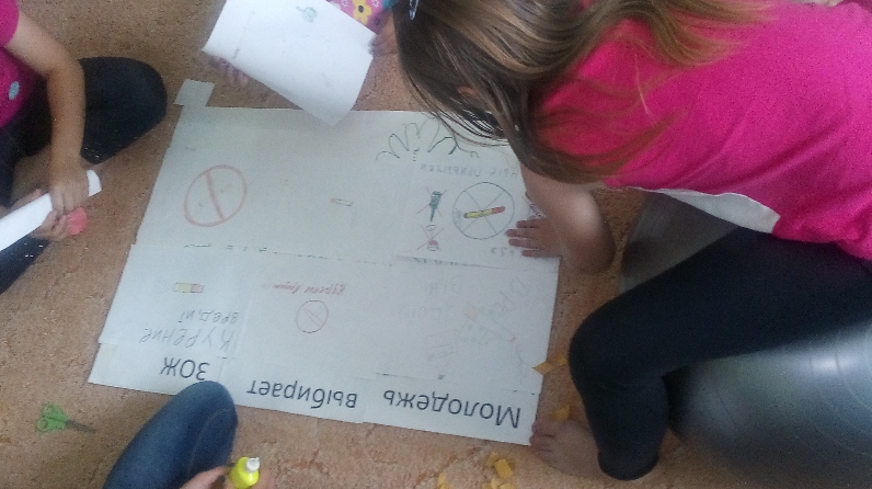 Затем дети совместно изготовили плакат: «Молодежь выбирает здоровый образ жизни»
