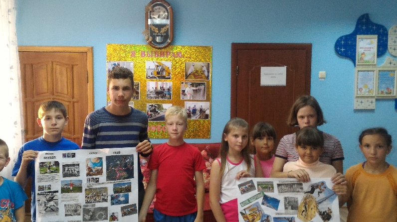 В начале занятия проводилось упражнение-разминка «Типичные заголовки», в ходе которого воспитанники подбирали типичные заголовки типичных историй из старых журналов и газет, затем по очереди их зачитывали и обсуждали. После разминки дети разбились на две подгруппы для создания коллажа, чтобы в нем осветить одну тему, соответствующую интересам команды. После выполнения задания участники подгрупп представляли друг другу свои коллажи, отвечали на вопросы.
