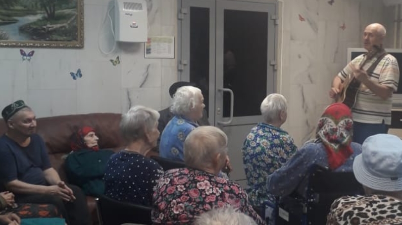 В рамках реализации Регионального проекта «Старшее поколение» национального проекта «Демография» в ГАУСО «Верхнеуслонский дом-интернат для престарелых и инвалидов» регулярно проводятся занятия по музыкотерапии. Специалисты дома-интерната уделяют особое внимание комплексному использованию технологий, форм и методов работы в сочетании с музыкой, что позволяет снять напряжение и внутренние переживания получателей социальных услуг.