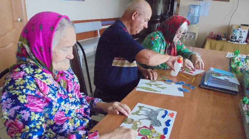 Занятия аппликацией из ткани полезны взрослым. Они успокаивают, умиротворяют, настраивают на творческий лад, активизирует работу головного мозга. Сделать аппликации из ткани нравится и нашим получателям социальных услуг. Они с удовольствием создают свои композиции и картины. Их работы украшают стены дома- интерната.