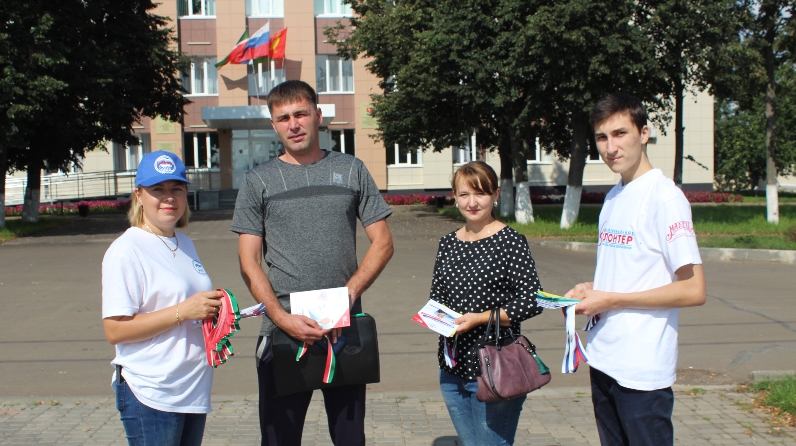 Активисты Добровольческого объединения «Волонтер» при ГАУСО «КЦСОН «Шафкать»МТЗ и СЗ РТ в Сармановском МР» на центральной улице и в учреждениях райцентра провели акцию «Триколор». В ходе акции, волонтеры раздали ленточки с символикой дня и буклеты с информацией о Государственном флаге России, его истории и значении.