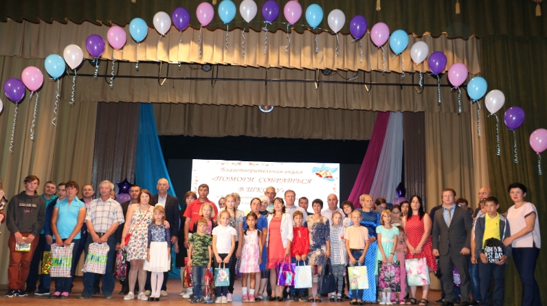 Благотворительная помощь в виде канцелярских товаров: письменные принадлежности, тетради, наборы для детского творчества , портфели, школьная форма- оказались очень кстати накануне учебного года для подопечных семей. О чем, со сцены дома культуры, с благодарностью сообщили родители и дети.