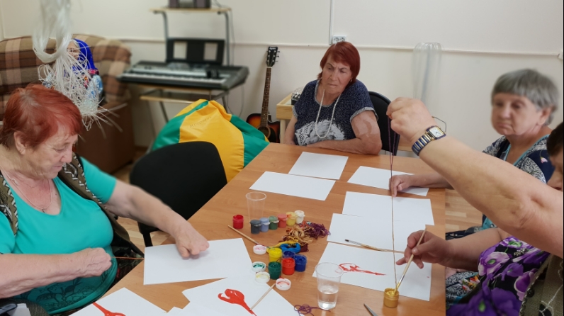 21 августа для проживающих в ГАУСО «Черемшанский дом- интернат для престарелых и инвалидов» специалист по социальной работе Мутыгуллина М.И. организовала нетрадиционный метод рисования с помощью ниток. Да-да! Проживающие использовали нитки в качестве средства рисования. Смочив их в краске можно рисовать извилистые линии, получается просто волшебно. Рисование нитками оказалось очень увлекательным, что всем захотелось попробовать себя в этом искусстве. Какие же красивые работы получились у наших проживающих!