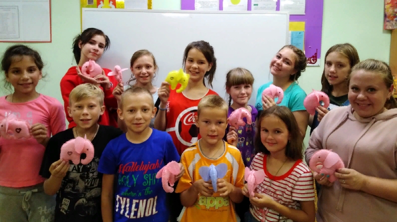 На занятии ребята научились аккуратно кроить детали, соединять детали швом «иголку вперед», оставляя одинаковые по длине стежки, равномерно набивать игрушку ватой и «оживить» слоника, нарисовав глаза.
