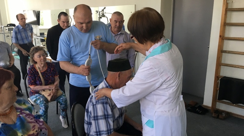 В ГАУСО ЦРИ «Изгелек» медицинской сестрой физиотерапевтического отделения Любовью Габдрахмановой было проведено практическое занятие на тему: «Алмаг- 01 и его применение в домашних условиях».