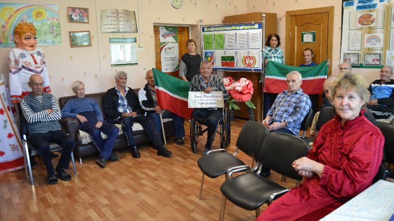 В ГАУСО «Федоровский дом-интернат для престарелых и инвалидов» тоже провели ряд мероприятий, посвященный к этой знаменательной дате. Библиотекарь Алина Артемьева оформила стенд «Наша Республика: любим и гордимся!» и рассказала о символах Республики Татарстан. Воспитатель Раиса Гайнуллина с получателями социальных услуг дома-интерната провела викторину «Знатоки Татарстана». Цель данного мероприятия: закрепить знания об истории Татарстана, его культуры и традиции; расширить кругозор и развивать коммуникативные отношения.