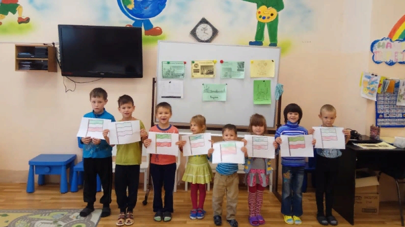 Занятие началось с прослушивания гимна Республики Татарстан. Затем воспитатель рассказала об одном из самых главных государственных праздников республики – День Республики Татарстан.