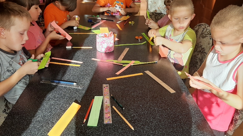 04.09.2019г. инструктором по труду Давыдовой О.Н. проведено занятие c воспитанниками 7- 8 лет на тему: «Закладки для книг». Цель: научиться выполнять закладки для книг, познакомиться с техникой «плоское прямое плетение». На занятии присутствовало 6 человек.