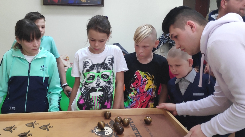 В начале мероприятия специалисты рассказали правила игры, дали возможность каждому поиграть и выбрать для себя определенную игру. Соревновалось более двадцати детей с ограниченными возможностями здоровья, и каждый хотел научиться и набрать большее количество очков. В завершении мероприятия всех участников ждал вкусный чай с ароматной выпечкой. Дети получили много позитива и просили приезжать к ним еще.