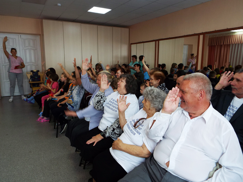 Пожилые люди и дети независимо от возраста и других особенностей вместе дарили друг другу радостные мгновенья совместной деятельности.