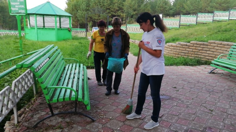 Сотрудники ГАУСО КЦСОН «Шафкать» и волонтеры ДО “Волонтер” чистили территорию родника «Бузат»