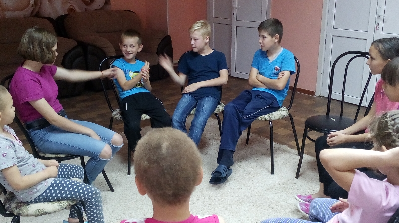 После ритуала приветствия и упражнения «Испорченный телефон» дети ответили на вопросы теста и услышали информацию об уровне коммуникабельности и общения участников. После этого с детьми была проведена беседа «Умение вести разговор – это талант».