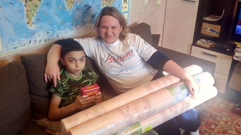 11 сентября в рамках акции «Осенняя неделя добра - эстафета добрых дел #ДОБРЫЙТАТАРСТАН#МЭРХЭМЭТЛЕТАТАРСТАН» добровольцы центра «Волонтер», при Комплексном Центре социального обслуживания населения «Шафкать» в Сармановском муниципальном районе, посетили семью Шаеховых. Они вручили обои, выданные индивидуальным предпринимателем Газизовой Ганжой Закаровной.