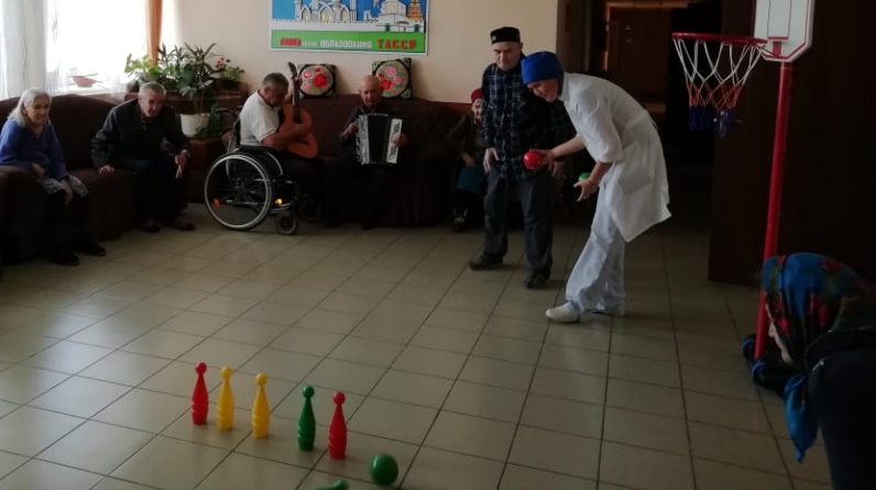 В Тукаевском дом- интернате для престарелых и инвалидов специалистом по социальной работе и инструктором ЛФК было проведено спортивно – оздоровительное мероприятие «Будь здоров!» в рамках добровольческой акции «Осенняя неделя добра – эстафета добрых дел “#ДОБРЫЙТАТАРСТАН#МӘРХӘМӘТЛЕТАТАРСТАН”.