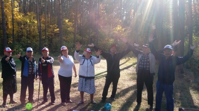 Получатели социальных услуг под руководством инструктора по ЛФК Зульфии Тагировой выехали в лес на спортивную площадку, где устроили спортивные состязания.