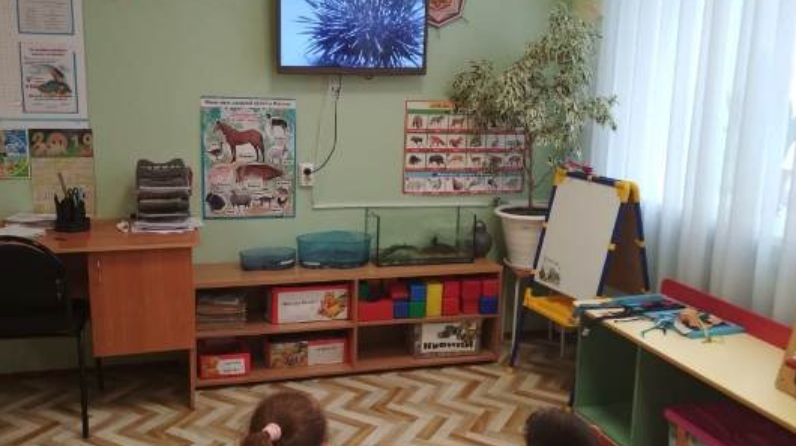 Целью являлось уточнить у детей представление о значении морей и океанов в жизни человека и их охране. Занятие началось с прослушивания шума моря. Воспитатели приготовили глобус для того, чтобы наглядно показать, что большую часть нашей планеты занимают водоемы. Затем показали презентацию о морях и океанах, где подробно рассказывалось об их значении в жизни человека и о животных, обитающих в них, и о растениях. Большое внимание воспитатели уделили об их охране, защите.