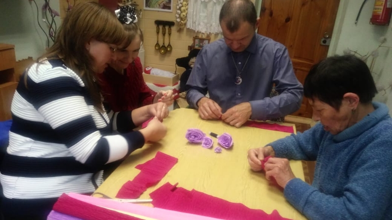На занятиях по изготовлению цветов и гофрированной бумаги пожилые люди и инвалиды тренируют мелкую моторику: пальцы рук становятся более послушными и гибкими, – а также помогают поддерживать интеллектуальную активность.