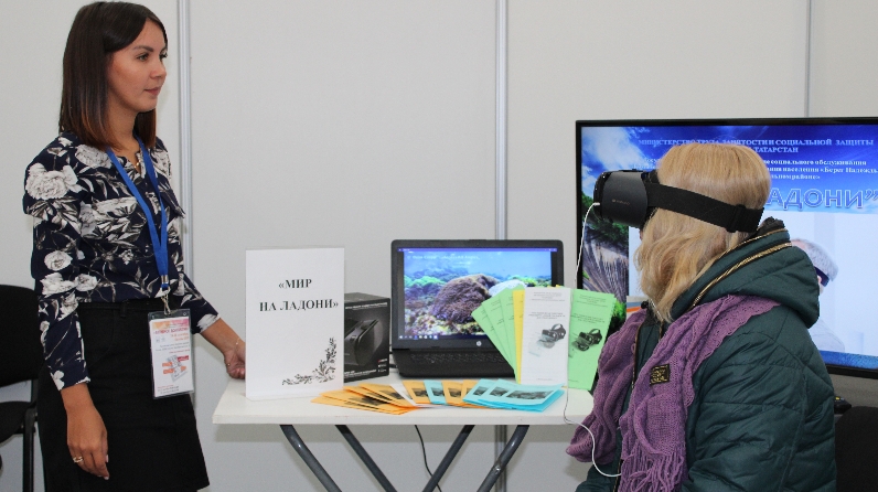 Гости выставки узнали о формах работы с пожилыми людьми и инвалидами в Менделеевском районе. Всем желающим была предоставлена возможность поучаствовать в виртуальной экскурсии и окунуться в подводный мир и мир экзотики, совершить незабываемый полет в космос, а самое главное каждый из них смог увидеть достопримечательности города своей мечты.