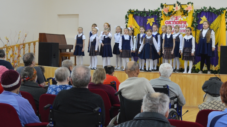 Сегодня, 2 октября двери актового зала интерната приветливо распахнулись для наших проживающих. Людей почтенного возраста пришли поздравить учащиеся гимназии №3 г. Чистополь. Для присутствующих прозвучали старые — добрые русские песни, в исполнении юных исполнителей. Хочется поблагодарить организаторов мероприятия за постоянное внимание и общение, ведь для пожилых это особенно ценно.