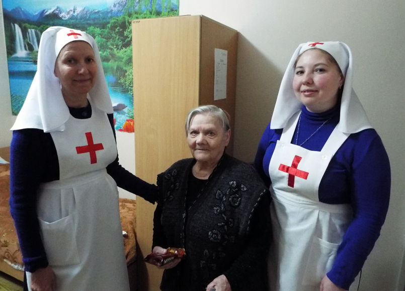 Самыми первыми пришли поздравить пожилых людей в Елабужский дом-интернат для престарелых и инвалидов Сестры Милосердия Елабужского благочиния. Каждому они нашли теплые слова поддержки, пожелали здоровья, долголетия, отличного настроения, угостили всех сладостями.