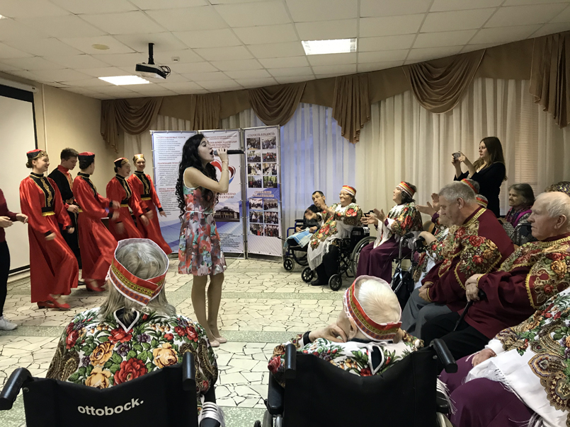Началось оно с показа тематического видеоролика, затем творческий коллектив проживающих «Лейся, песня» вместе с волонтерами отряда «ЭкоДОС» Елабужского института КФУ исполняли песни и стихи о России, о дружбе народов на русском, татарском, английском, украинском языках, танцевальный коллектив «Шаг вперед» исполнил калмыцкий танец. В ходе программы проживающие участвовали в викторине «Угадай народный костюм».