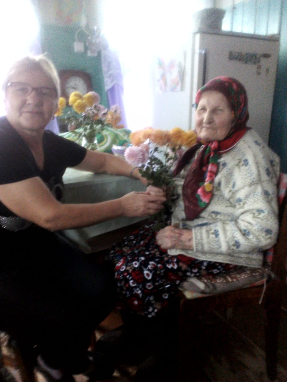 Социальные работники Хасанова И.И., Тугарова Л.Х. организовали мероприятие с чаепитием в клубе Шаршадинского сельского поселения. Для тех, кто не смог посетить праздничные мероприятия, были организованы поздравления на дому, например Глухова Н.П. поздравила свою подопечную, вручив букет цветов.