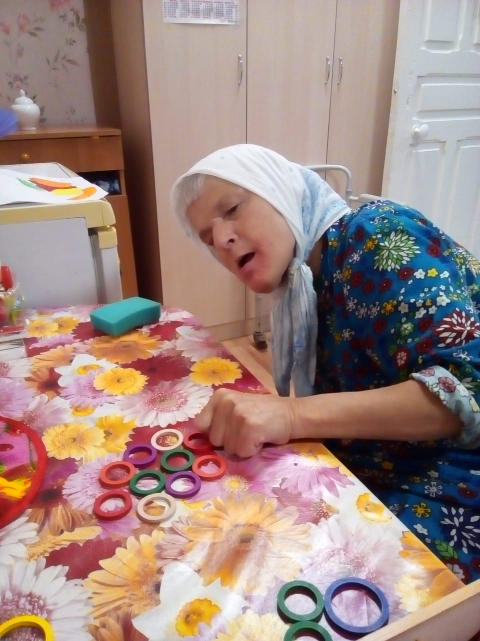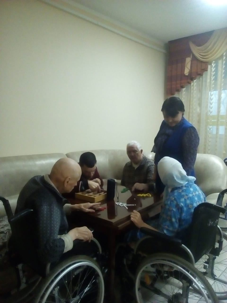 В «Джалильском доме-интернате для престарелых и инвалидов» проводятся индивидуальные и групповые занятия на тему «Геометрическая мозаика» под руководством соц.работника Демидовой З.Р. Жители дома- интерната с ограниченными возможностями создавали мозаичное панно из геометрических фигур: цветы, дома, животных, птиц и т.д. Предварительной работой была беседа с подопечными о геометрических фигурах, повторение цветов. Занятия способствовали повышению общей работоспособности людей, снятию психического напряжения, легкому переключению с одного вида деятельности на другой. Вначале занятия было проведено конструирование мозаики из геометрических предметов, в завершающей части конструирование из геометрических фигур в технике аппликация.