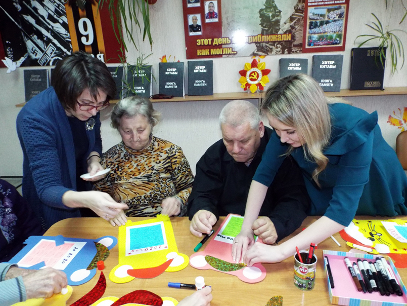 Проживающие с большим удовольствием делали настенные календари-мышки: склеивали детали разных форм и фактур, рисовали маркерами, проявляя творческую фантазию.