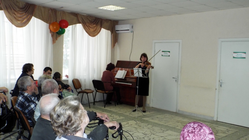 Проживающим дома-интерната возможность насладиться музыкой подарили преподаватели детской музыкальной школы №1 им. Э. Бакирова. Они подготовили яркие номера, среди которых игра на музыкальных инструментах: фортепиано и скрипке. Исполнялись классические, народные и современные музыкальные произведения.
