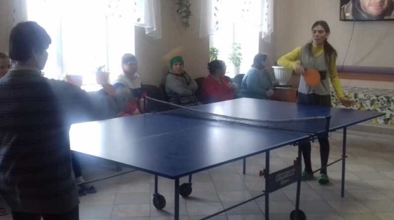 6 декабря, пятница 2019 год. Цель: 1) Формирование здорового образа жизни 2) Повышение интереса к спорту и спортивным мероприятиям. В фойе 7 жилого корпуса провели турнир по настольному теннису среди женщин. В рамках Декады инвалидов в интернате , по раннее составленному плану, каждый день проводятся мероприятия: беседы, спортивные игры, настольные игры, культурно- развлекательные программы. Вот и сегодня в 7 корпусе среди женщин провели турнир по настольному теннису. В мероприятии участвовали все желающие. Игра получилась очень увлекательной и интересной.