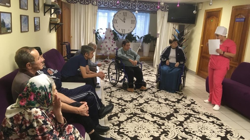 16 декабря 2019 года для получателей социальных услуг, палатная медицинская сестра Буинского дома-интерната Номина Г.Х. провела очередную беседу о вреде и профилактике алкоголизма в пожилом возрасте «Без алкоголя жизнь светлее. Мы за трезвость».