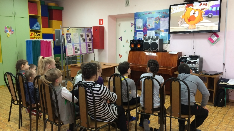 Занятие прошло в виде викторины по ПДД, где дети активно участвовали и показали свои знания по правилам дорожного движения. Закончилось занятие просмотром обучающего мультфильма «Смешарики. Азбука безопасности».