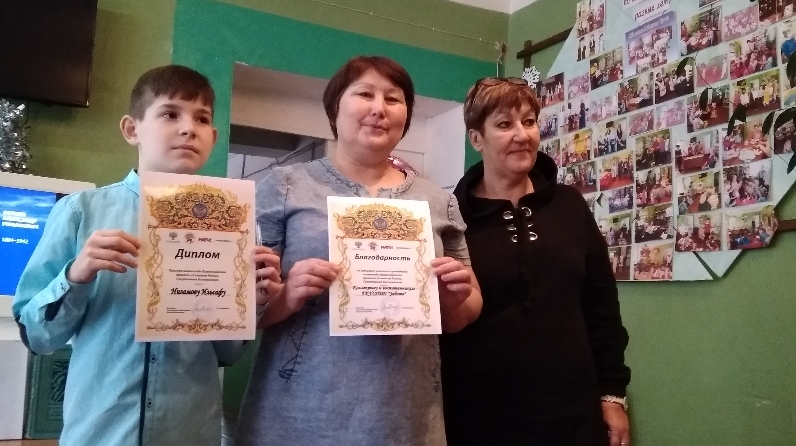 Это мероприятие запомнился ещё одним приятным моментом: наш воспитанник Низамов Ильсаф стал призёром олимпиады Всероссийского проекта «Символы России. Спортивные достижения» и его наградили дипломом призёра. А коллективу и воспитанникам приюта «Забота» за активное участие в проведении олимпиады вручили Благодарность.