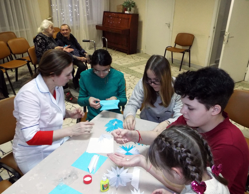 В Елабужском доме-интернате для престарелых и инвалидов прошел мастер-класс «Новогодняя школа волшебников» по изготовлению новогодних игрушек совместно с детьми Детского дома.