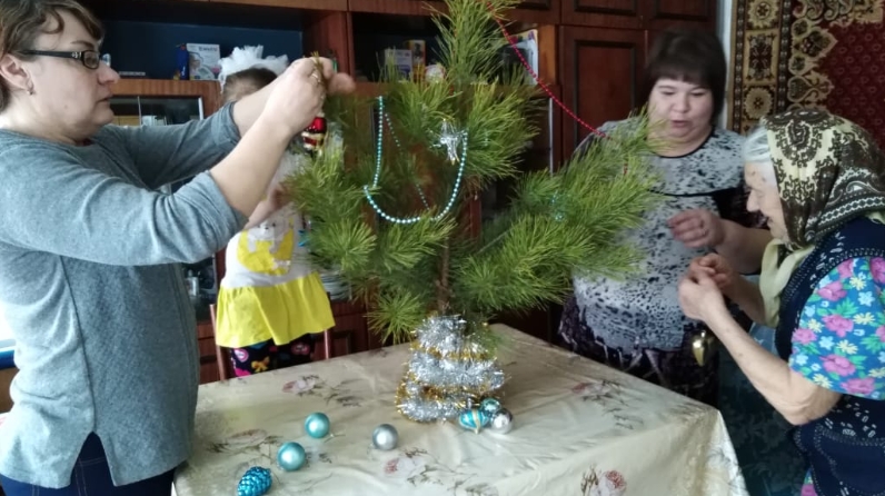 Получатели социальных услуг вместе с социальными работниками и детьми активно нарядили и украсили ёлку разнообразными игрушками, шарами, мишурой, гирляндами к новому году. И создали праздничное настроение в канун Нового года.
